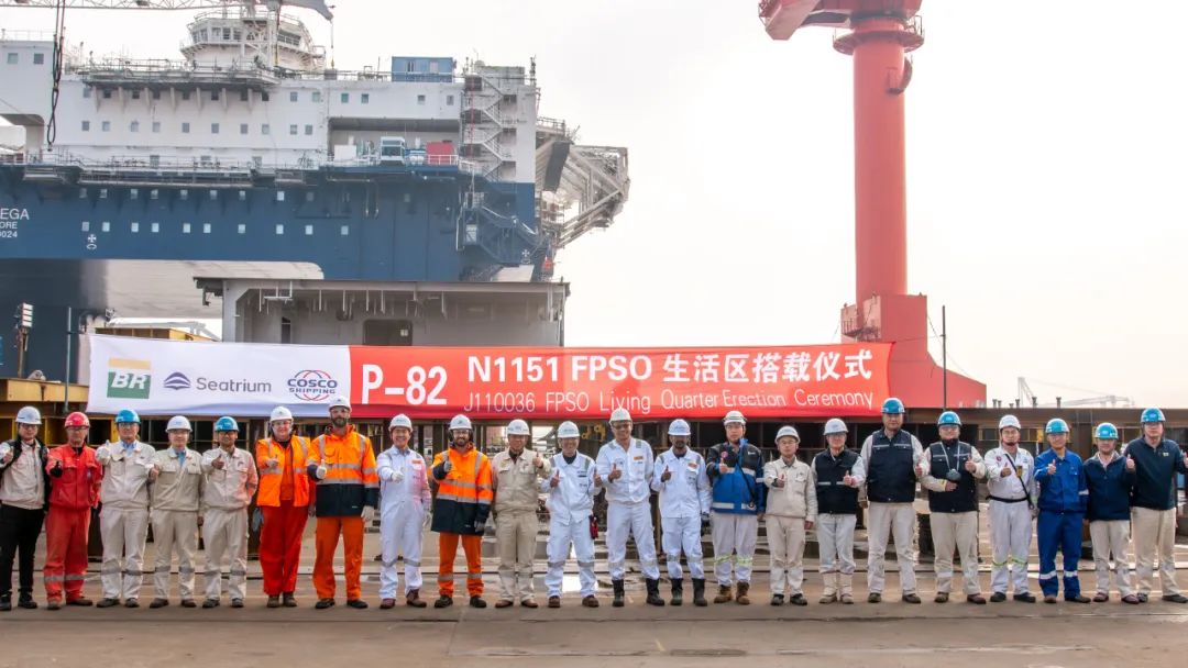 啟東中遠(yuǎn)海運(yùn)海工舉行N1151 P-82 FPSO生活區(qū)模塊搭載儀式