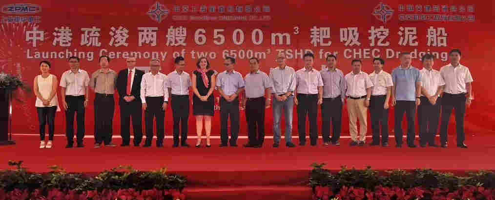 祝賀南通豪通公司(振華事業(yè)部)在上海振華重工(啟東公司)承接的整裝舾裝,搭載工程的6500m3耙吸式挖泥船,于8月18日上午11點18分順利下水!