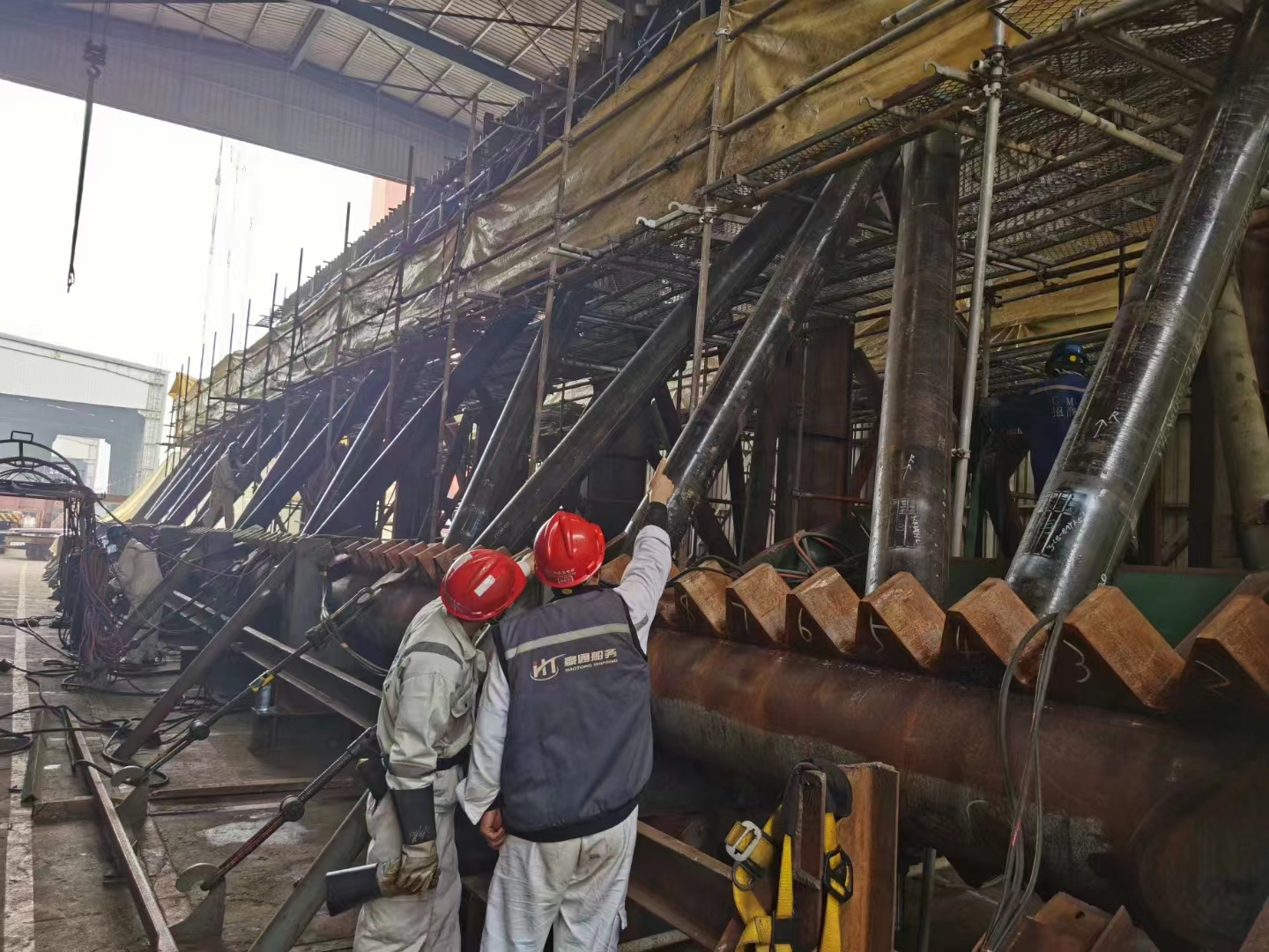 2023年4月30日,隨著招商重工273項目最后一節(jié)樁腿的成功摘鉤,標(biāo)志著豪通船務(wù)承接的招商重工“1200噸風(fēng)電安裝船”樁腿工程完美收關(guān)。自22年8月1日開始,豪通船務(wù)調(diào)集最優(yōu)秀的班組從齒條加工,單樁腿制作,樁腿合攏及最后的插樁對接,每一個環(huán)節(jié)都嚴(yán)絲合縫,無縫對接,所有作業(yè)人員爭分奪秒,夜以繼日,力爭在最短時間內(nèi)保質(zhì)保量完成項目并交付。